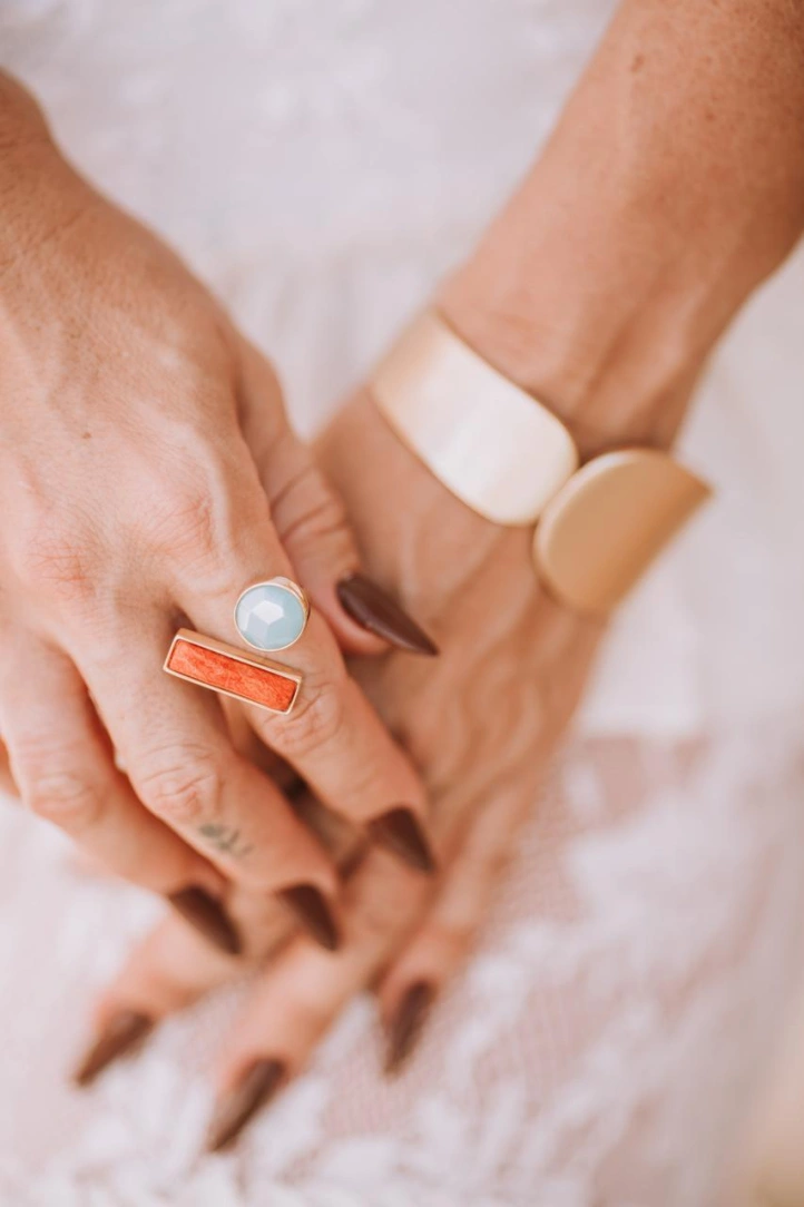 Anel regulável Ciano Dreams - Feldspato e ágat