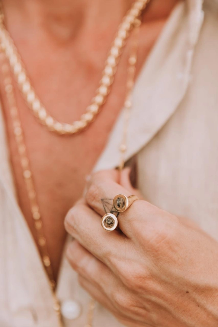 Anel regulável Diamant Noir - quartzo grafitad